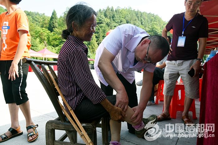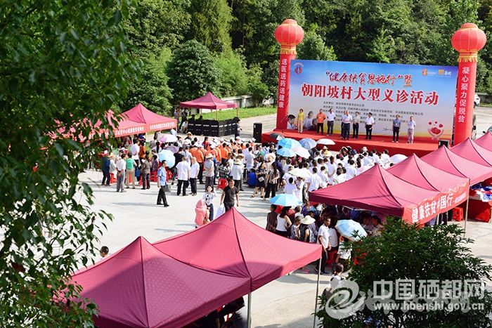 当天,“健康扶贫恩施行”暨朝阳村大型义诊活动启动,由市政协副主席蔡万高、刘庆华带队,恩施市卫计系统专家、医护人员及爱心企业一行100多人带着医疗设备来到朝阳坡村,为当地村民现场把脉问诊,免费体检,免费发放药品和宣传资料。