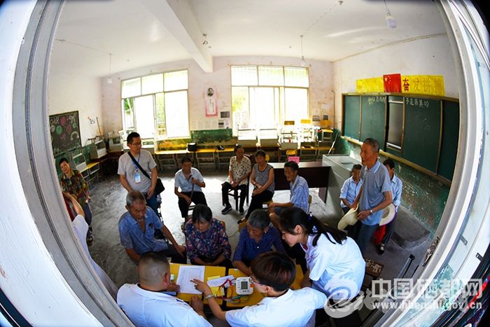 中国硒都网讯(全媒体记者 刘正熙 谢顺 通讯员 沈宏臣 余娇娇 肖雪)7月12日上午9:30,恩施市白杨坪镇朝阳坡村小学校园内挤满了人,义诊桌前,专家正为前来看病的村民认真检查、问诊。